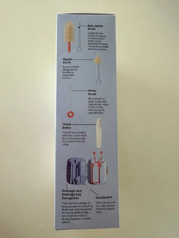 Новый набор для мытья и сушки бутылочек , не пригодился, так как ребенок есть только из груди, бутылочки не использовали