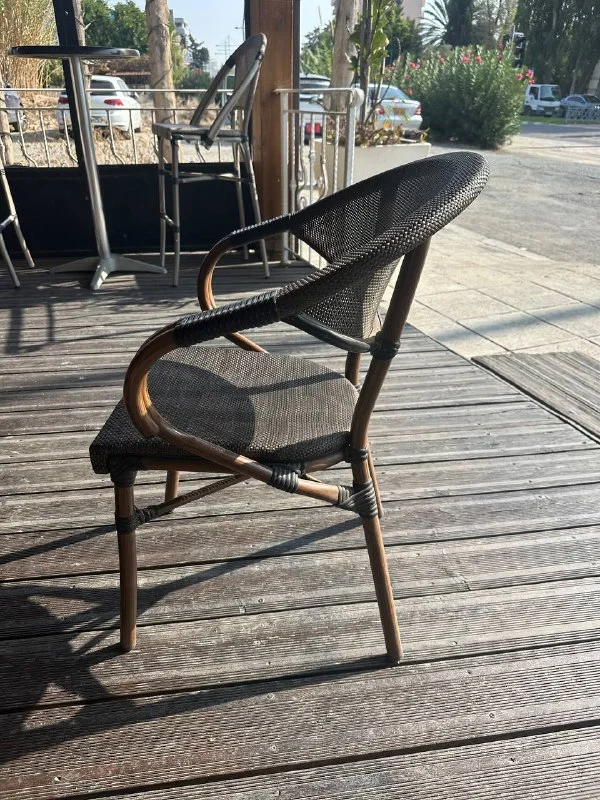 Стільці низькі плетені 9 шт - 25 €. Стілець напівбарний чорний 4 шт- 40€. Стілець банний плетений 4 шт - 25€. Столи барні 4 шт - 45€.