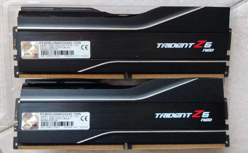 Продаю оперативную память G.Skill Trident z5 neo ddr5-6000, комплект 64 ГБ, 2x32 ГБ. CL30, expo, поддержка AMD. Работает отлично, как новая, 200 евро
