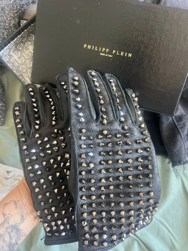 Женские перчатки, кожаные с шипами
