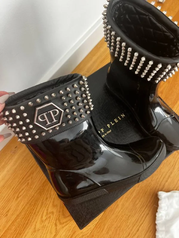 PHILIPP PLEIN (Италия, оригинал) НОВЫЕ резиновые сапоги с коробкой ( 37 размер указан, маломерят - идеально на 36 - 36,5 размер) ,