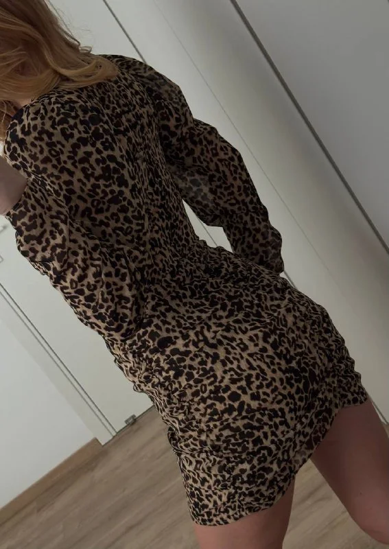 Леопардовый принт, внутри подплечники для придания обьемных рукавов, и косточки для груди вшиты.