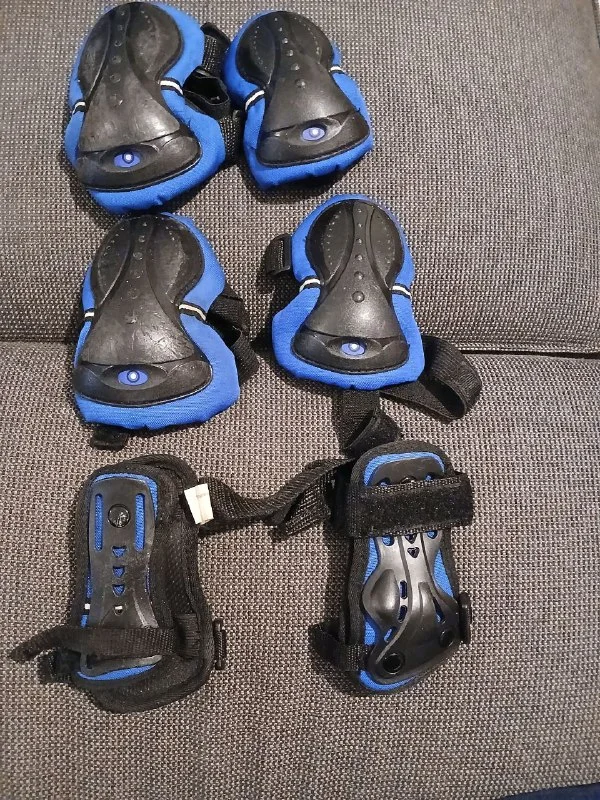 В подарок идёт защита для локтей, колен и запястий.