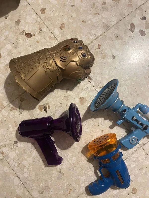 1)Рука таноса интерактивная ; 2)Пистолет из МИНЬЁНОВ ( пукалка как в мультике );3) два рупора ( изменяющий голос. Не сколько режимов- на ВИДЕО ВИДНО). Цена:20. Колосси, Лимассол.