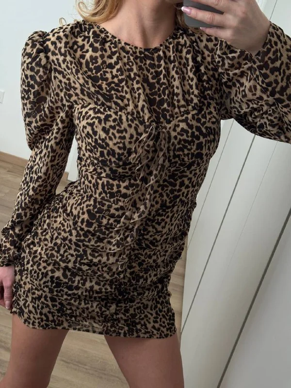 Леопардовый принт, внутри подплечники для придания обьемных рукавов, и косточки для груди вшиты.