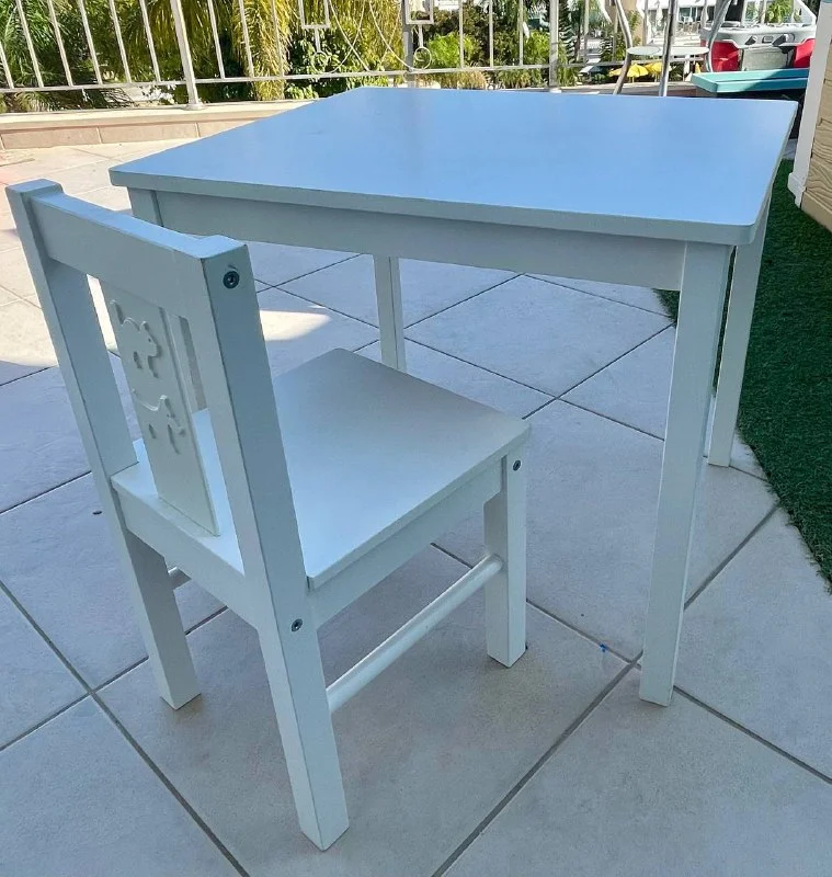 Крепкие деревянные стол и стул ИКЕА в хорошем состоянии. Есть следы использования (больше фото в личку) на функциональность не влияет