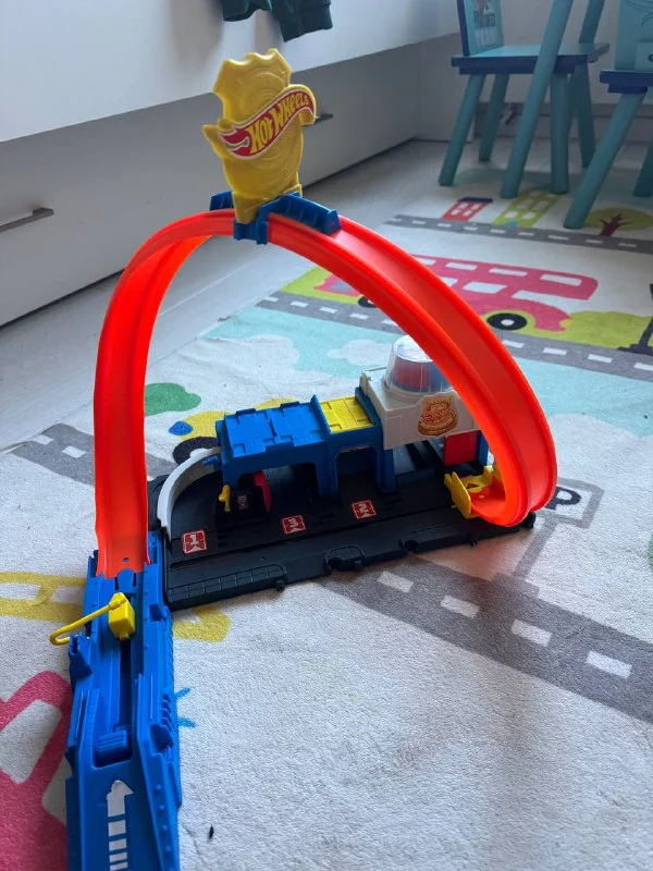 Дорога hot wheels, все работают , дорожная часть (оранжевая) передвигается, машинка по ней едет после запуска.