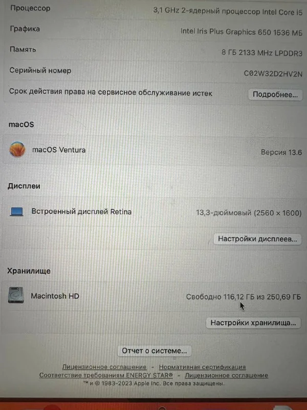3.1Ghz i5 / SSD 250Gb / RAM 8Gb / VRAM Intel Iris Plus 650 / 886 циклов аккумулятора