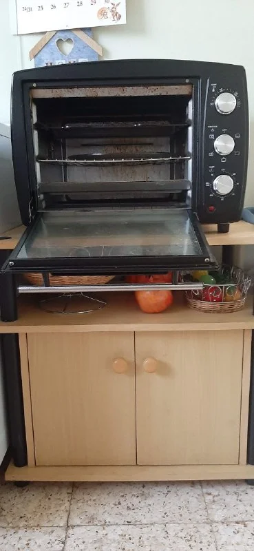 Электрическая духовка-гриль.Пользовались несколько раз. Нет веретена ,духовочный поднос немного ржавый но можно отмыть и отчистить .Нужно помыть средством чистящим изнутри.Работает отлично.Лимассол.Самовывоз. 30 евро .Возможен торг.