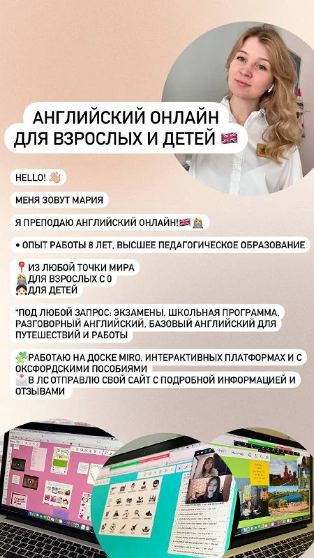 Добрый день! Меня зовут Мария, я репетитор по английскому языку онлайн 🇬🇧