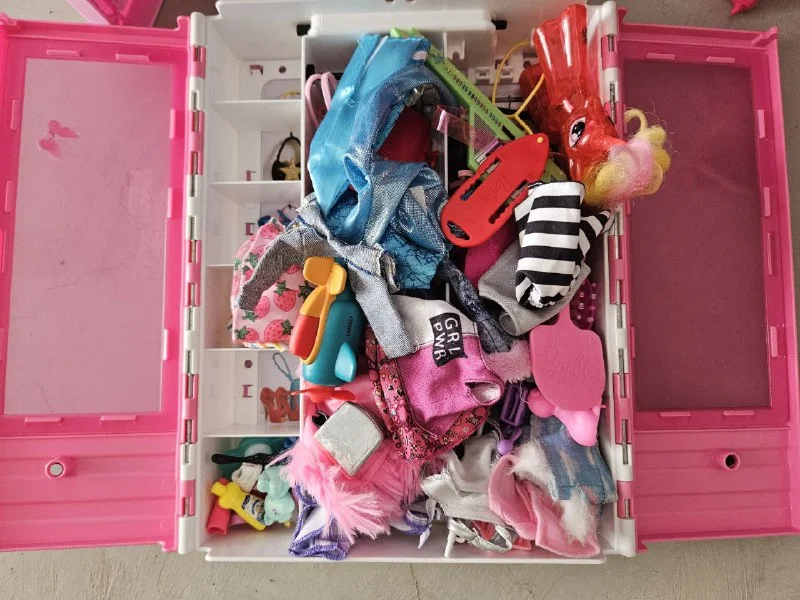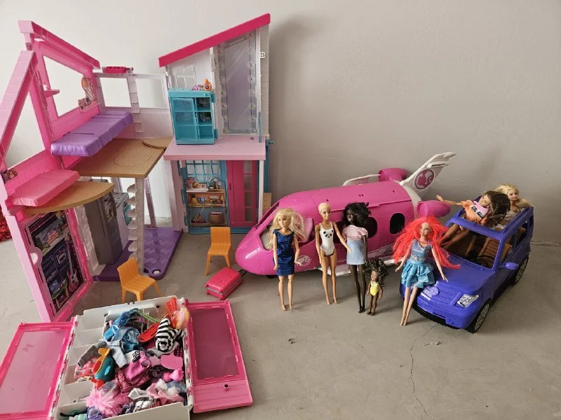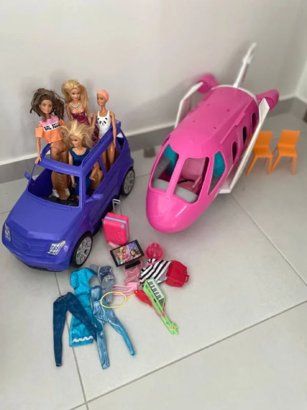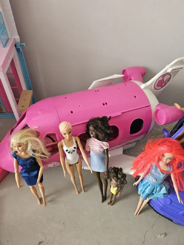 Дом, самолёт, машина, куклы, гардероб, одежда.