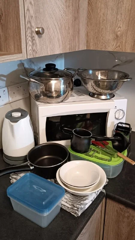 Все предметы в отличном состоянии, тщательно упакованы и хранятся в контейнере.