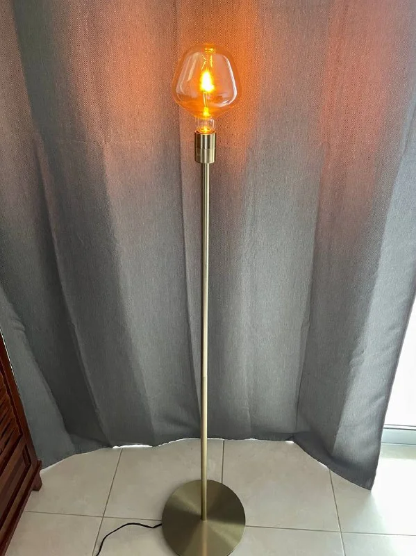 Стильная напольная лампа теплого света для уютной атмосферы вечером.