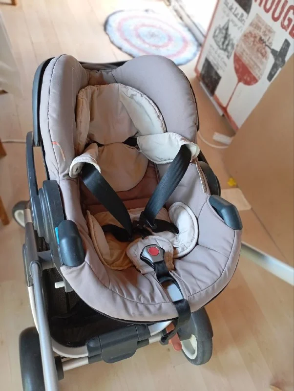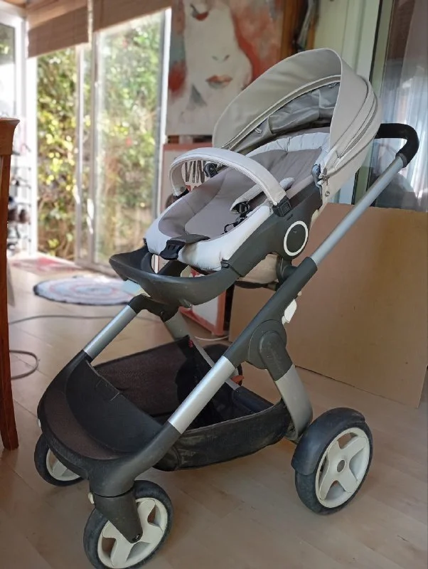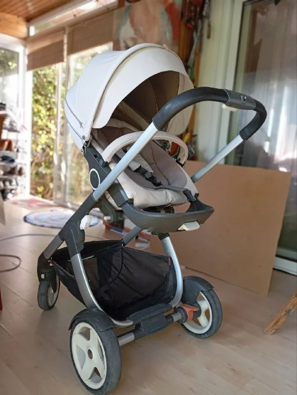 Суперудобная "STOKKE". База + 3 элемента (люлька основная, люлька-автокресло, люлька средняя после 6 мес) Для мам: комфортная коляска светлого цвета, идеально подходит для жаркого кипрского климата. Чехлы и все элементы легко снимаются и стираются в машинке. В комплекте идут тëплый чехол, антикомариная сетка, дождевик и подстаканник. Для пап: поменяны колëсные подшипники (8 штук). Коляска катится легко и приятно.