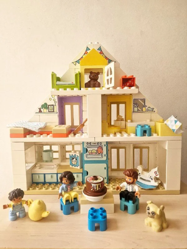 Главный игровой домик имеет высоту более (36 см), ширину (39 см) и глубину (10 см). Чтобы еще больше расширить игровые возможности, объедините этот универсальный игровой набор с другими игровыми наборами LEGO® DUPLO®.