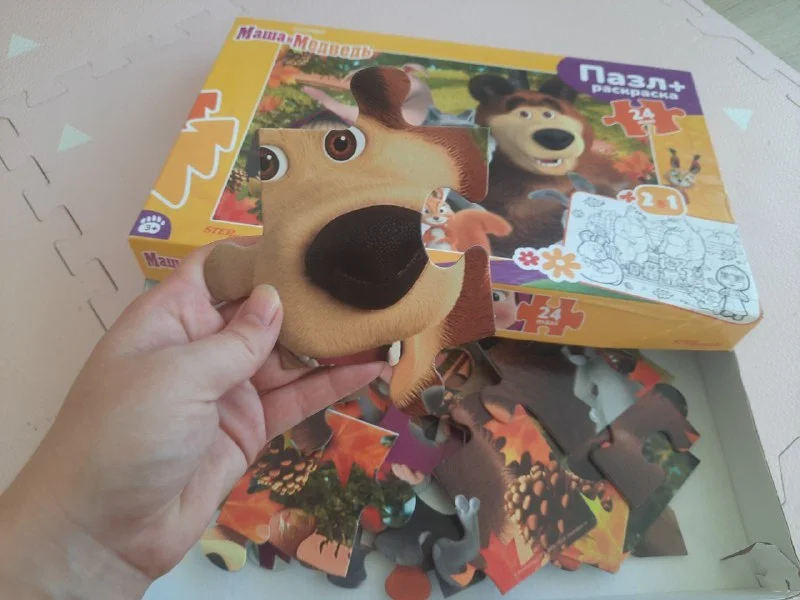 Очень большой пазл Маша и медведь на 24 крупных элемента в идеальном состоянии со стороны пазла (с обратной стороны раскраски немного почеркано карандашом). 4е