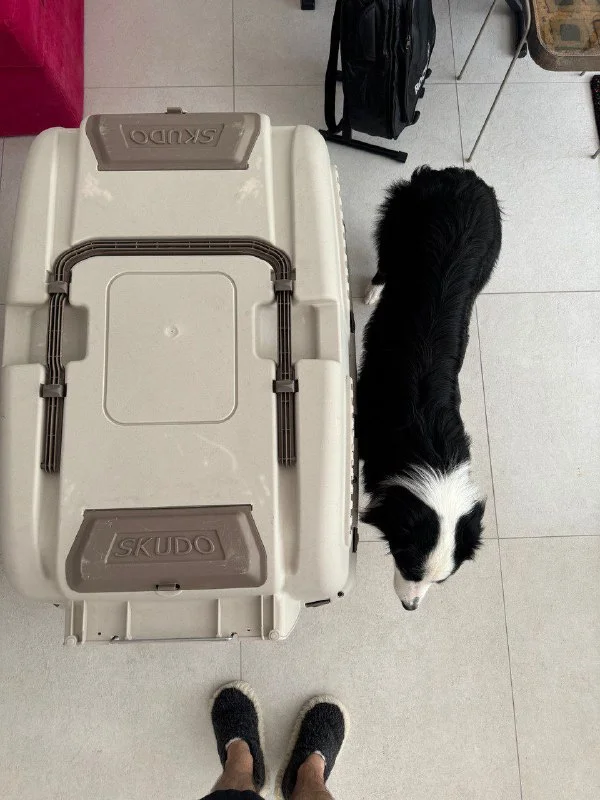 Продаем переноску для авиа перелетов больших собак весом до 45кг. Вместе с комплектом колес и миской для воды. Также на корпусе есть закрывающийся отсек, можно положить корм или мелкие собачьи пренадлежности.