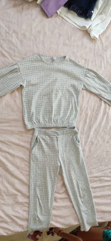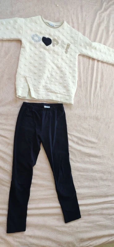 4. Костюм Белая кофта и темные штаны, размер -134, цена - 10€