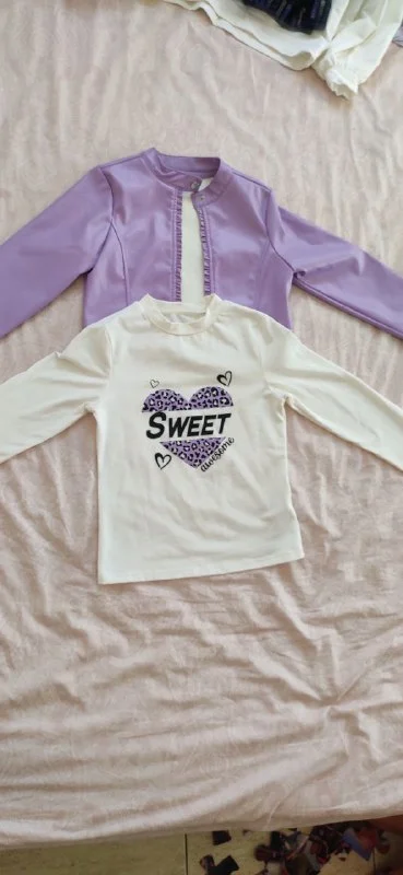 2. Костюм фиолетовая куртка и белая водолазка, размер - 140, цена - 10€