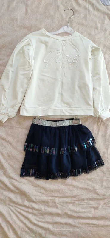 1. Костюм Белая кофта и синяя юбка, размер - 128, цена - 10€