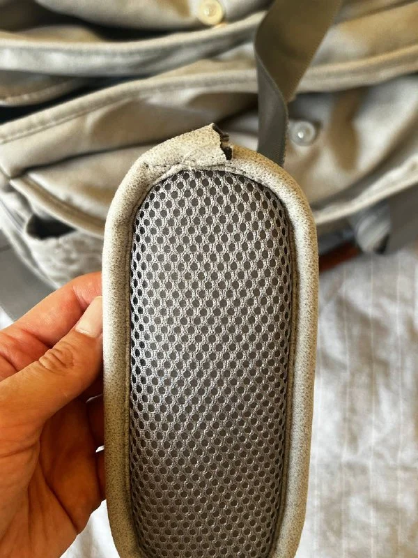 Есть небольшой дефект на подложке ручки — чуть отошла строчка, все постирано, пятен нет.