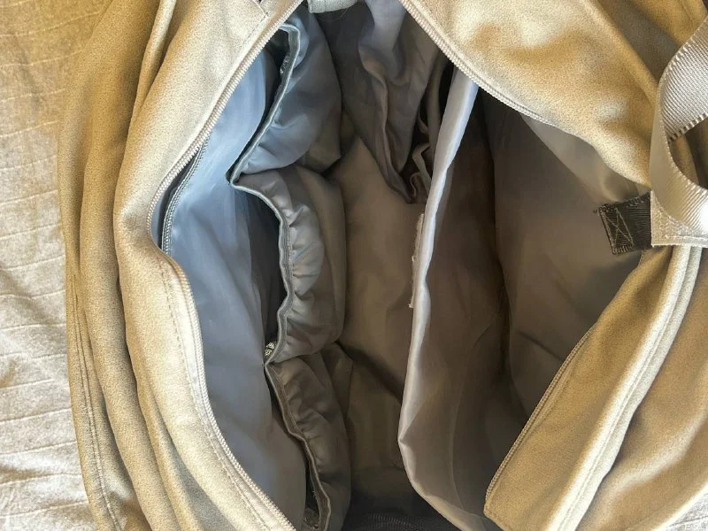 Очень много разных отсеков, помещалось просто все, таскала с собой в ней даже молокоотсос, есть термоотсеки для бутылочек и отдельный блок для сосок, вешается на коляску удобно
