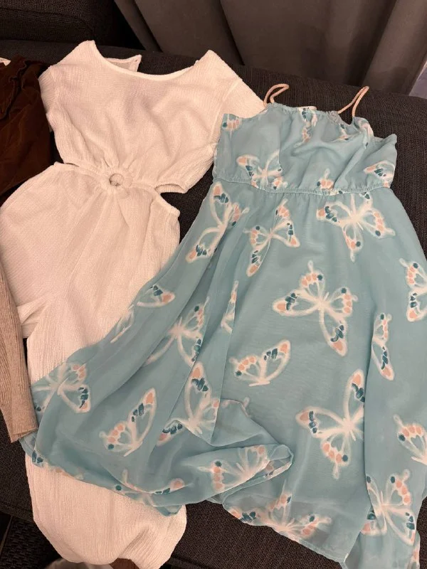 Голубое новое, коричневое и белый костюм надеты по разу. Кардиган в очень хорошем состоянии.