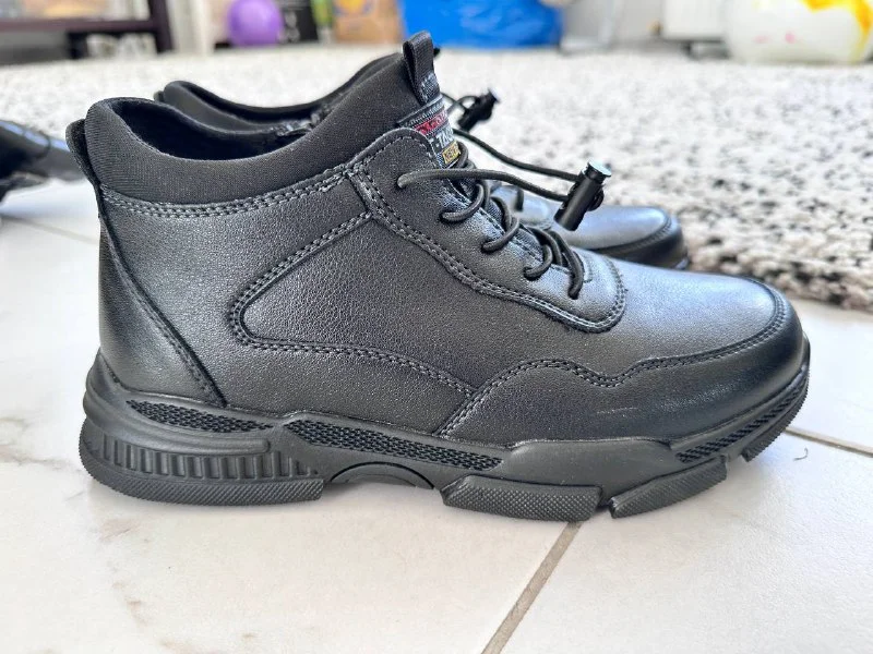Новые кожаные ботинки премиум качества для мальчика на кипрскую зиму, в школу. На молнии. 36 размер. По стельке 24.5см. Привезли летом на зиму, но переросли не надев.