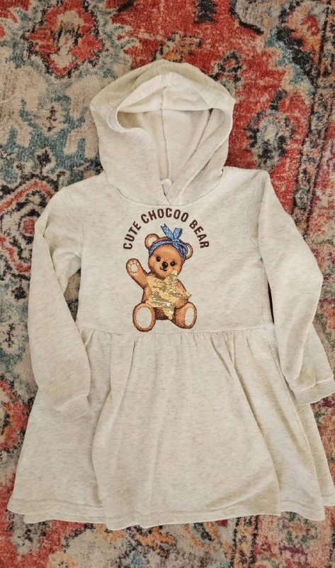 • Светлое платье с капюшоном, р.110. Есть маленькое пятнышко