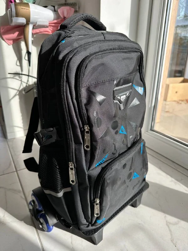 Новый школьный рюкзак на колесах. Подарок сыну, но ему не понравился. Ни разу не был на улице. Платформа может отстегиваться. €45