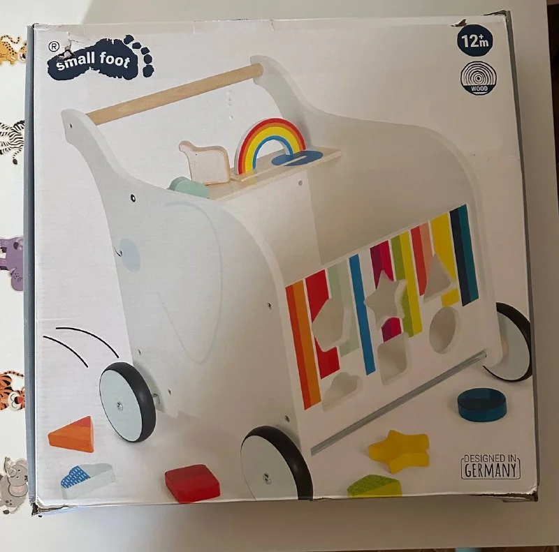 Продаю вот такую красивую тележку с тормозом (ходунки) с сортёром, совершенно новую (в заводской коробке). Можно использовать как walker (с тормозом), так и для хранения игрушек, 55 €.