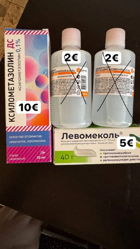 Спрей назальный при аллергических ринитах, синуситах, хлоргексидин. Левомеколь мазь. Сроки свежие