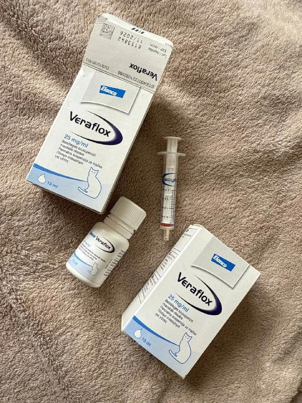 Отдам бесплатно Veraflox антибиотик для кота (половина препарата). Срок годности до 11.2026