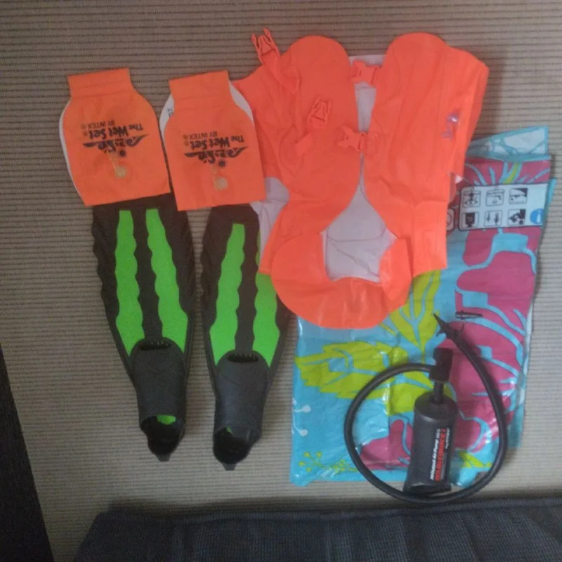 Надувной матрас,новые нарукавники и жилет,ласты 38-39 размер,насос.Все за 15 евро