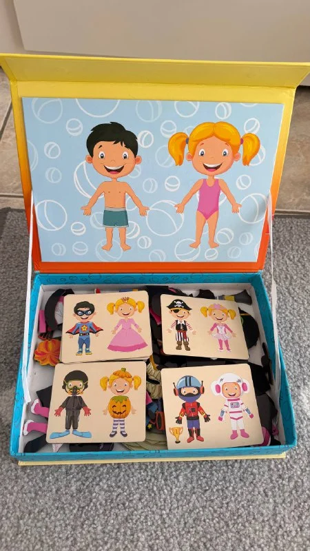 1. Игра с магнитной одеждой. Можно наряжать мальчика и девочку по карточкам, можно без. Все детали на месте.
