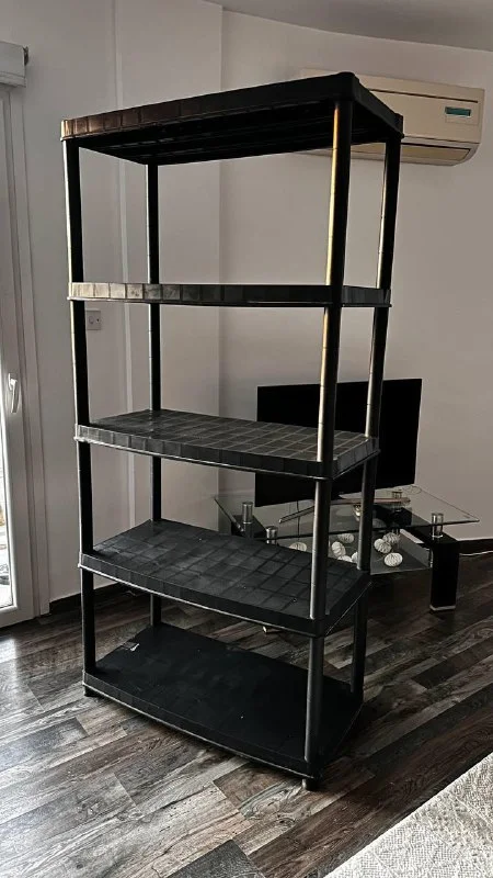 Стеллаж пластик, размер 40/88/185. Можно устанавливать не все полки, на одной полке трещина небольшая ( на фото показала). 20 евро