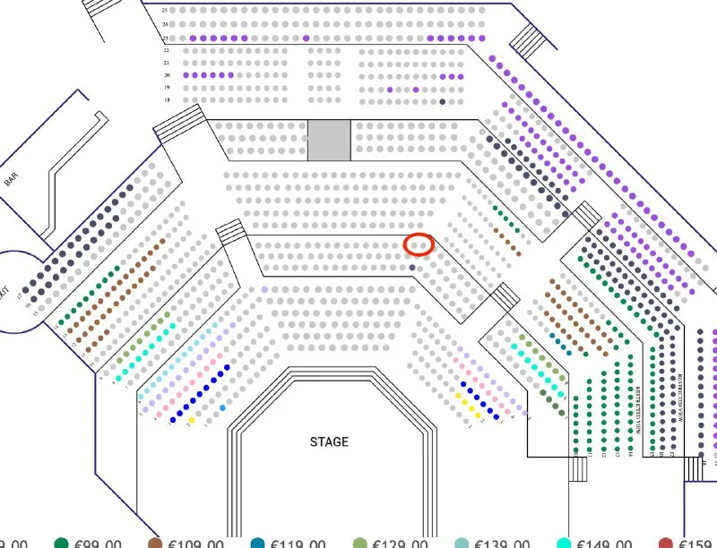 9 ряд 35-36 место. Покупала за 278€ отдам за 230€