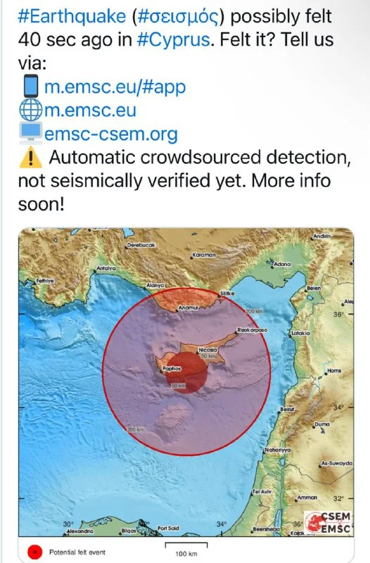 🔊 Землетрясение магнитудой 2,8 ощущалось в Лимассоле