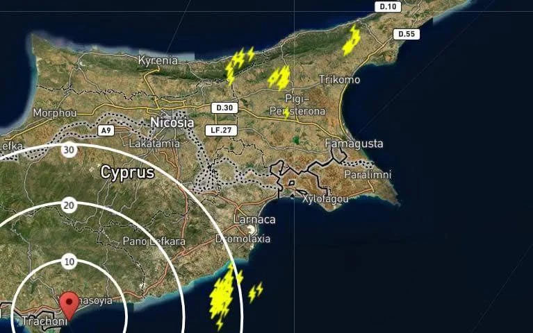 На Кипре, особенно в юго-западной и северо-восточной частях, зафиксированы сильные дожди и грозы. По данным метеослужбы, осадки уже начались и продолжают усиливаться. Жителям рекомендуется соблюдать осторожность.