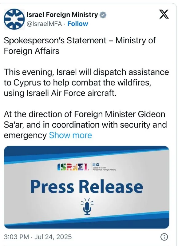 🤝 Также хочу публично поблагодарить Египет, Иорданию, Ливан, Израиль, Швецию, Испанию и Грецию за их поддержку в ответ на нашу просьбу, несмотря на то что эти страны тоже сталкиваются с аналогичными проблемами.