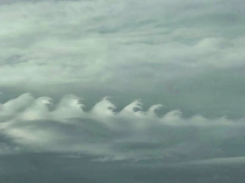 Они формируются, когда два слоя воздуха движутся с разной скоростью: нижний слой плотнее и идёт медленнее, а верхний — легче и быстрее. На границе этих потоков возникают вихри, которые закручивают облака в характерные волны.