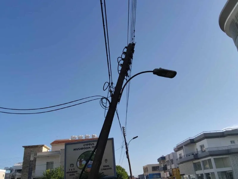 🚗 Авария в Лимассоле: перевернувшийся автомобиль снёс электрический столб