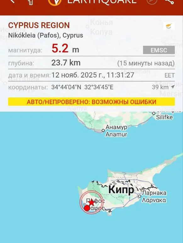 🌍 Землетрясение у берегов Кипра: толчки магнитудой 5,6 ощутили жители побережья