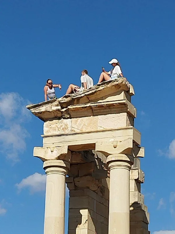 В археологическом комплексе Аполлона Хилатского под Лимассолом произошёл инцидент: группа туристов взобралась на древнюю конструкцию, чтобы сделать снимки.