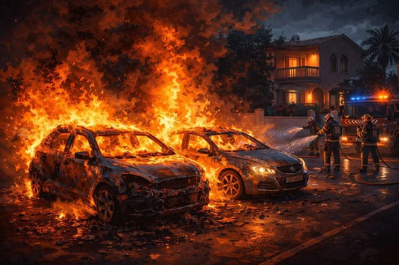 🔥Ночной пожар в Лимассоле: два припаркованных автомобиля полностью сгорели у жилого дома