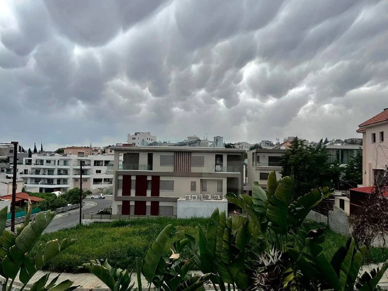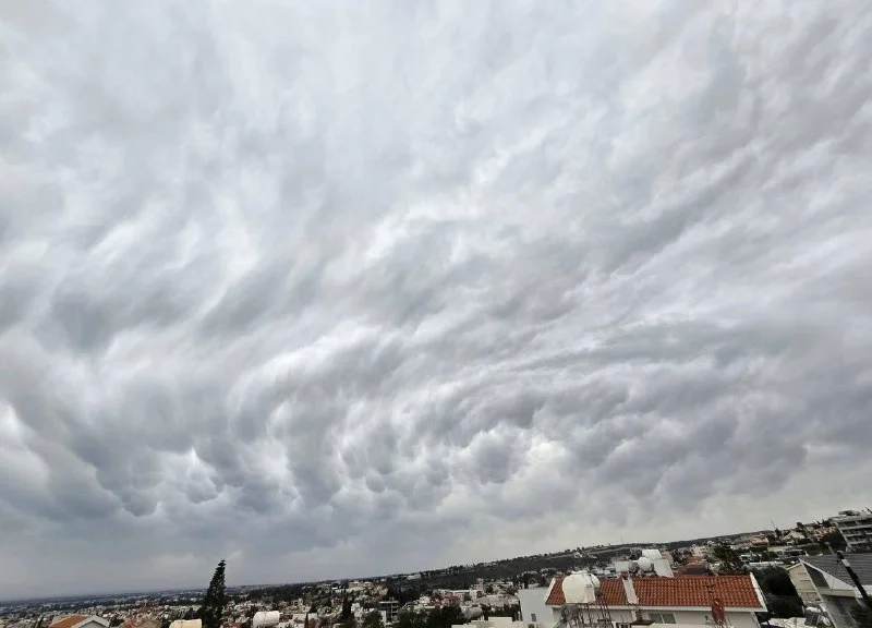 **Сегодня днём жители Лимассола и Никосии стали свидетелями редкого атмосферного явления — облаков типа mammatus. Их заметили над районом Айя Фила в Лимассоле, а также в небе над столицей. Облака напоминают свисающие мешки или пузыри и обычно формируются под мощными грозовыми шапками .