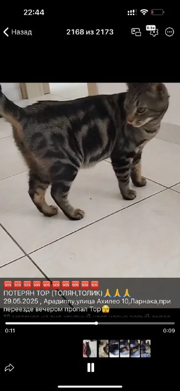 29.05.2025 , Арадиппу,улица Ахилео 10,Ларнака,при переезде вечером пропал Тор🫣