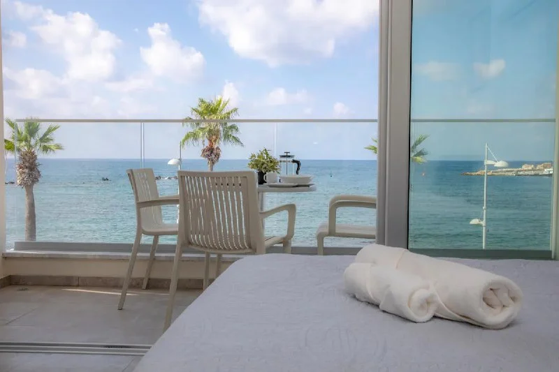 Из этой панорамной квартиры открывается вид на гавань и средневековый замок Пафоса.