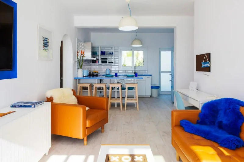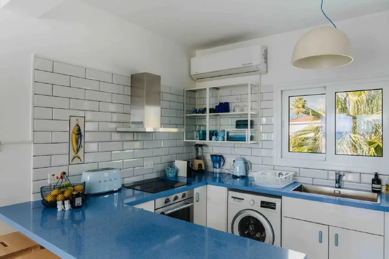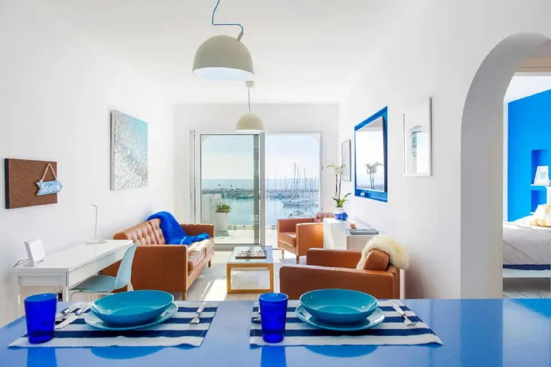 Стильная 2-комн. квартира с потрясающим видом на море. Большой балкон для отдыха. Оборудованная кухня, гостиная со Смарт ТВ и Ютубом, кондиционеры во всех комнатах и высокоскоростной интернет. Предоставляется чистое постельное белье, полотенца, халаты, тапочки, утюг, фен и гигиенические принадлежности.