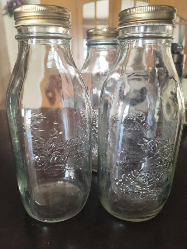 3 старинные бутылки для сока, масла, молока или любой другой жидкости.